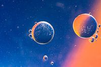 Abstracte macrofoto van oliebelletjes in water die op planeten lijken