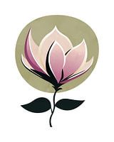 Een bloem in een minimalistisch-abstracte stijl, geinspireerd van magnolia`s. De inspiratie was de magnoliaboom van mijn buren: de bloemen zijn wit tot licht-beige aan de binnenkant en roze aan de buitenkant. De illustratie maakt deel uit van een serie van enkele bloemen, elk geïnspireerd op een echte bloem.