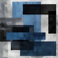 Een visueel meesterwerk dat de essentie van geometrische kunst weergeeft. Deze abstracte compositie van overlappende rechthoeken in diepblauw en subtiele grijstinten creëert een harmonieuze balans van structuur en dynamiek. De texturen en kleurgradaties creëren een fascinerende diepte die elke kamer een moderne maar tijdloze esthetiek…