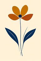 Dit moderne en minimalistische ontwerp toont een gestileerde bloem met levendige oranje en gele bloembladen, een subtiele groene stengel en elegante blauwe bladeren. Het strakke en eenvoudige ontwerp maakt het een perfecte keuze voor moderne interieurs. Deze kunstprint voegt een rustgevend en elegant element toe aan elke ruimte, zoals een slaapkamer, kantoor of woonkamer. De warme kleuren in combinatie met het minimalistische ontwerp zorgen voor een tijdloze uitstraling. Ideaal als muurdecoratie voor liefhebbers van bloemen en minimalistische kunst.