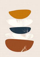 Een abstracte poster met verschillende vormen in zachte, warme aardse kleuren.