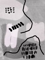 Collage met penseelstreken, grijze betonstructuur en potloodlijnen.