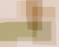 Zacht pastelgroen, zand, taupe, beige en wit, abstracte vormen, papiertexturen, neutraal kleurenpalet.