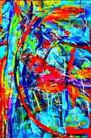 Kleurrijke abstracte digitale kunst. Soms met penseelstreken, kleurdruppels, soms intuïtieve vormen. Kleurrijk en levendig met de kleuren groen, geel, blauw, roze, paars, blauwgroen, zwart, rood en wit. Kleurrijke en decoratieve abstracte muurschilderingen als tijdloos kunstwerk.