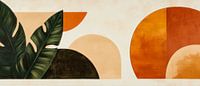 Een harmonieus samenspel van aardetinten en geometrische vormen nodigt uit om te blijven hangen. Het levendige bladontwerp geeft de compositie een frisse, organische touch. Ideaal voor de woonkamer, het creëert een uitnodigende sfeer die rust en creativiteit bevordert - een perfecte achtergrond voor gezellige of ontspannen avonden.