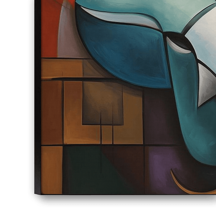 Geef je ruimte een moderne upgrade met dit abstracte olifanten kubisme schilderij en geniet van de levendige kleuren en unieke stijl die het met zich meebrengt.