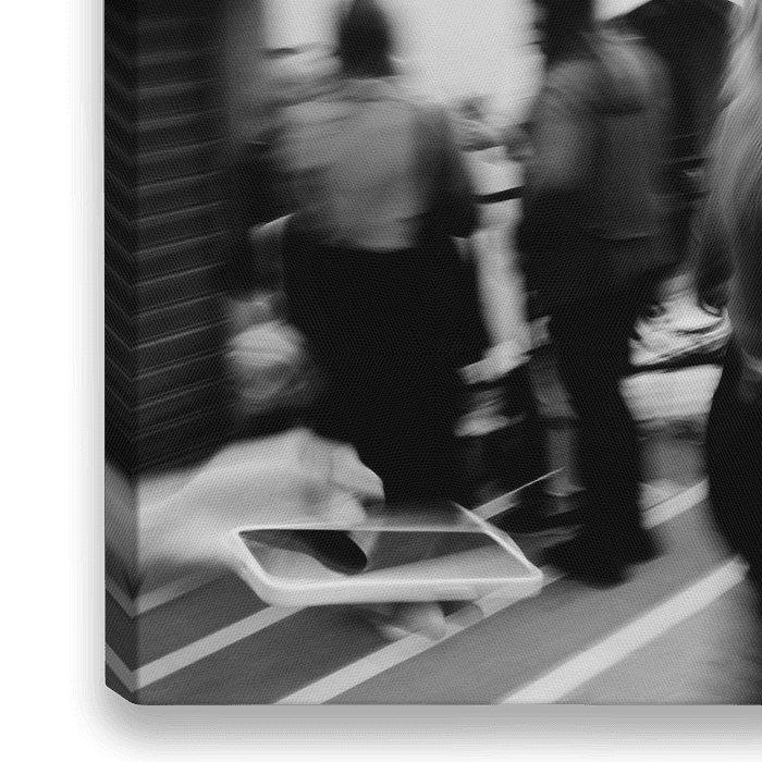 Deze foto breekt met de klassieke documentaire weergave en duikt diep in de artistieke abstractie. Door een bewuste bewegingsonscherpte versmelten de contouren van verschillende voorbijgangers tot donkere, vloeiende schaduwvormen. Deze steken contrastrijk af tegen een lichte, bijna wit stralende huismuur op de achtergrond. Ik werd…