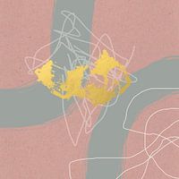 Moderne abstracte hedendaagse kunst met organische vormen en lijnen in neutrale pastelkleuren - zacht roze, wit en goud.