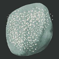 Abstracte organische vorm in groen tegen een donkere zwarte achtergrond. Witte stippen op de voorgrond. Bohemian stijl.
