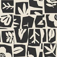 Abstracte, organische vormen. Boho stijl. Zwarte vormen tegen een beige achtergrond maken samen een mooi geheel. Modern abstract en minimalistisch. Collage.
