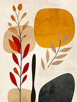 Abstracte organische vormen, bohemian stijl. Botanisch en minimalistisch in aardetinten. Een bijzondere blikvanger voor je interieur! Kies zelf het formaat en materiaal bij dit werk en maak het helemaal naar wens.