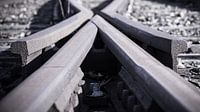 stylistisch detail van een roestige oude rails bij een oud niet gebruikt spoor nabij Kampen, Overijssel. uitgevoerd in zwart wit met sepia tinten.