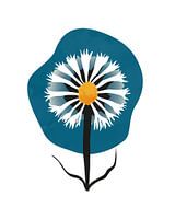 Een bloem in een minimalistisch-abstracte stijl, gebaseerd op paardebloemen, met de blauwe lucht op de achtergrond. De illustratie maakt deel uit van een serie van enkele bloemen, elk geïnspireerd op een echte bloem.