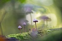 Deze foto van de steeltjeszwam is niet samengesteld uit meerdere foto's, maar is gemaakt door langs de paddestoelen op de voorgrond te fotograferen. Dit geeft een dromerig beeld omdat de paddestoelen op de voorgrond vaag weer gegeven worden.