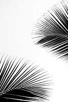 Deze zwart-wit foto laat palmboom bladeren zien in een eenvoudige en strakke compositie. Het beeld is minimalistisch opgebouwd en de focus ligt volledig op de vormen van de bladeren. Doordat de foto geen kleur bevat, komen de contrasten sterker naar voren. De donkere bladeren tekenen zich scherp af tegen de lichtere achtergrond,…