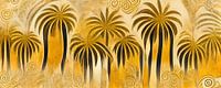 Een kleurrijk digitaal schilderij van abstracte palmbomen in te stijl van Gustav Klimt. Dit werk is geïnspireerd door de vormen en het kleurenpallet van "De Kus". Het werk geeft een warme en klassieke uitstraling aan uw interieur!