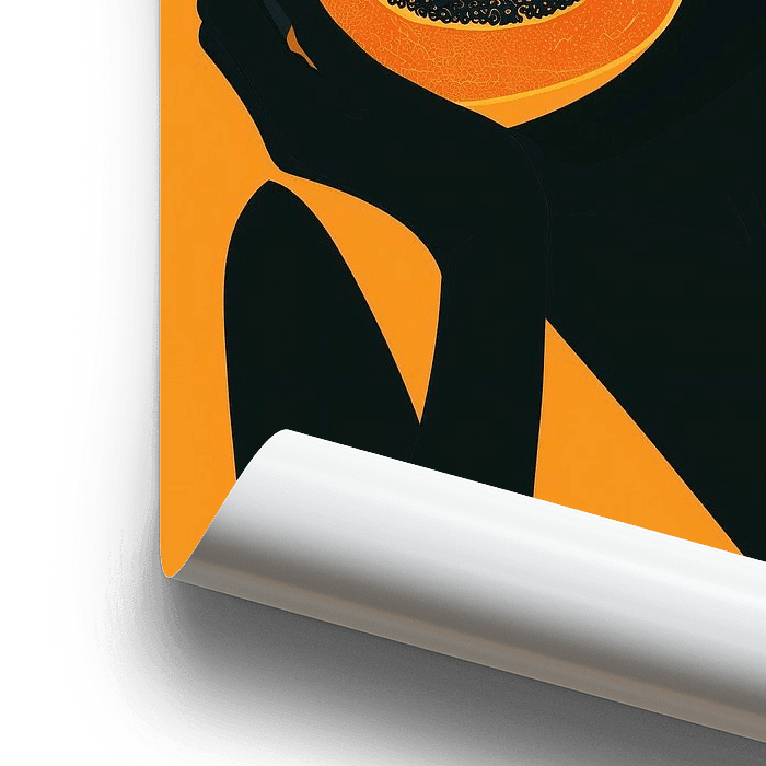 Deze poster toont een abstracte vrouw met een halve gesneden papaja. De afbeelding is volledig in zwart en geel of oranje. In de geest van minimal art is de afbeelding erg gereduceerd, beperkt tot de essentie: De zwarte vrouw en de sappige papaja. Dit creëert een geweldig decoratief effect.