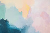 Een sfeervol en modern abstract ontwerp met zachte pasteltinten en dynamische penseelstreken. Dit kunstwerk straalt rust en verfijning uit en is ideaal om een eigentijdse uitstraling aan elk interieur te geven. De harmonieuze kleurencombinatie van zachte blauwen, rozige tinten, en subtiele geelnuances maakt het een perfecte aanvulling voor bijvoorbeeld een slaapkamer of kantoorruimte. Dit schilderij trekt subtiel de aandacht zonder te overweldigen, waardoor het geschikt is voor minimalistische en moderne inrichtingen. Ideaal voor liefhebbers van abstracte kunst die een serene sfeer willen creëren.