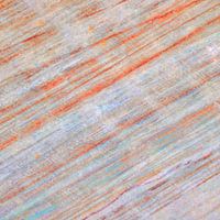 Een abstract en kleurrijk beeld van de onderkant van een viaduct, waarin verschillende tinten en patronen samenkomen. De kleuren zijn met computerprogrammatuur voor fotobewerking opgehaald.