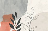 Dit abstracte kunstwerk combineert warme aardetinten met geometrische vormen en minimalistische lijntekeningen van een plant. Ideaal voor liefhebbers van klassieke en minimalistische kunst, het brengt een rustige en moderne esthetiek in elke kamer.