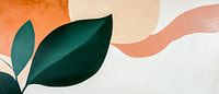Een harmonieus samenspel van zachte aardetinten en levendige bladeren geeft dit kunstwerk een natuurlijke elegantie. De gebogen lijnen en ronde vormen creëren een rustgevende, uitnodigende indruk. Het is ideaal voor de woonkamer en brengt een frisse, ontspannen sfeer die uitnodigt om te blijven hangen en te dromen.