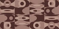 Bloem. Botanische illustratie in retrostijl in wit op roestbruin grijsDina Dankers Japandi. Abstract landschap met gouden zon en vogels op Japans patroon in okergeelDina Dankers
