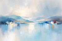 Dit prachtige digitale kunstwerk toont een serene rivier die door een landschap stroomt, omringd door zachte kleuren en subtiele tinten. De abstracte stijl van het schilderij vangt de rust en de schoonheid van de natuur op een unieke manier. De delicate blauwtinten en lichte pastels creëren een kalmerend effect, waardoor dit kunstwerk perfect is voor elke ruimte die een vleugje rust en elegantie nodig heeft. Hang het in uw woonkamer of kantoor om een gevoel van sereniteit en verfijning toe te voegen. Deze digitale print is een uitstekende keuze voor kunstliefhebbers die houden van moderne en abstracte kunststijlen.