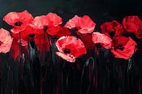 Rode klaprozen in de stijl van een schilderij op een zwarte achtergrond.