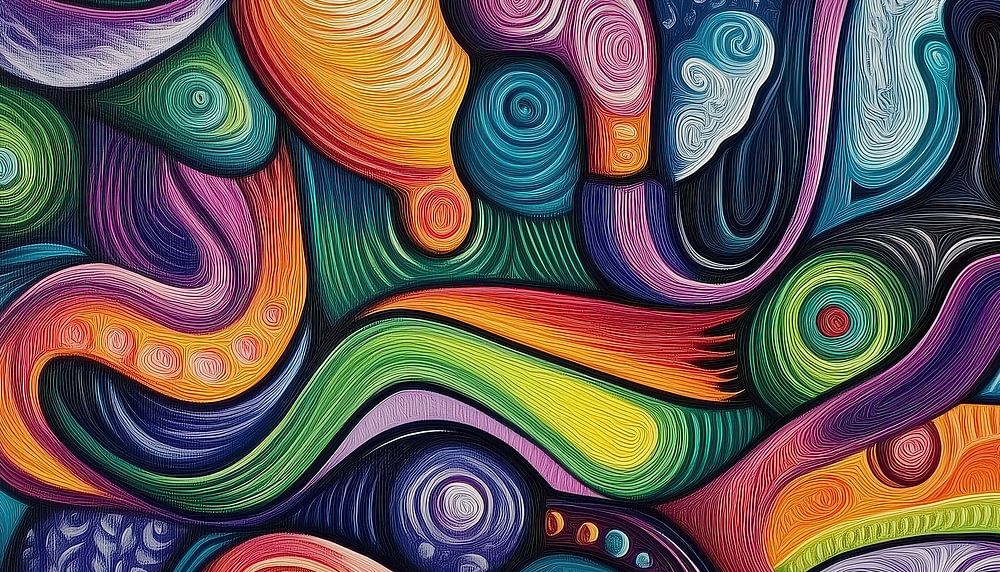 De kleuren zijn zorgvuldig gekozen en variëren van warme rood- en geeltinten tot frisse blauwen, groenen en zachte pastels. Deze kleurrijke mix geeft het schilderij een dynamisch maar toch samenhangend karakter. Door het gebruik van transparante lagen en subtiele overgangen ontstaat er diepte en textuur, waardoor het werk blijft fascineren – zelfs na herhaald kijken.