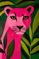 De panter voelt zich thuis in de groene jungle. Deze panter is roze omdat dat goed bij het groen past. Hij trekt zijn wenkbrauw op, maar dat is slechts een waarschuwing: ook al ben ik roze, neem me serieus. Wil jij ook serieus genomen worden? En hou je van mooie kleuren? Dan is deze poster echt iets voor jou.