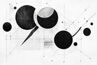 Hier ontvouwt zich een fascinerend samenspel van geometrische vormen en contrasterende zwart-wit tinten. Grote, harmonieus gerangschikte cirkels en fijne lijnen trekken de aandacht en geven de kamer een modern tintje. Dit kunstwerk is ideaal voor een stijlvolle woonkamer of een creatief kantoor, waar het inspiratie en dynamiek kan uitstralen.