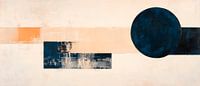 Zachte aardetinten worden gecombineerd met diepblauw om een harmonieuze balans van helderheid en diepte te creëren. De geometrische vormen trekken de aandacht en nodigen uit om te ontspannen. Dit kunstwerk is ideaal om op te hangen in een woonkamer, waar het een modern, minimalistisch accent toevoegt en een gespreksonderwerp vormt.