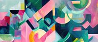 Een harmonieus samenspel van levendige kleuren en geometrische vormen ontvouwt zich in dit kunstwerk. De mix van zachtroze en levendige groene tinten creëert een dynamische sfeer die zowel energie als rust uitstraalt. Ideaal voor de woonkamer, trekt het de aandacht van gasten en moedigt het inspirerende gesprekken aan.