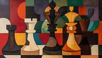 Abstracte schaakstukken kubisme kleurrijk panorama schilderij die een prachtige luxe toevoeging zal zijn aan elke ruimte. Met zijn unieke en stijlvolle uitstraling is het een ware eyecatcher. De schitterende kleuren en het bijzondere ontwerp maken dit kunstwerk 100% uniek en origineel. Het is de perfecte fotoprint om je interieur helemaal af te maken.
