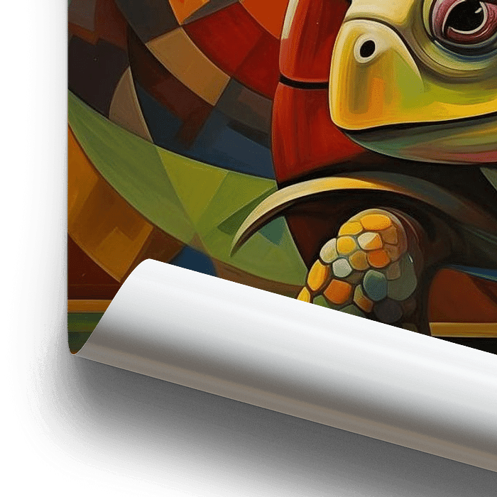 Abstracte schildpadden kubisme panorama schilderij brengt een originele en speelse interpretatie van deze fascinerende dieren tot leven in een panoramaformaat dat direct de aandacht grijpt. Het schilderij toont twee schildpadden die zijn opgebouwd uit geometrische vormen, scherpe lijnen en gelaagde vlakken, helemaal in de geest van het…