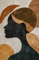 Dit artistieke ontwerp speelt met vorm en kleur om een boeiend beeld te creëren dat zowel modern als tijdloos is. De subtiele gelaagdheid van geometrische en organische vormen, gecombineerd met een beperkt kleurenpalet van goud, zwart, bruin, beige en wit, draagt bij aan een diepgaande visuele ervaring. Het stuk zou prachtig staan in een moderne inrichting, vooral tegen een minimalistisch decor, waar het de ruimte een vleugje verfijnde esthetiek kan geven. Perfect voor de kunstliefhebber die een stijlvolle en subtiele artistieke toets aan hun leefruimte wil toevoegen.