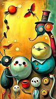 Grappige figuren in een rustige achtergrond. Een vredig tafereel in een goede sfeer. Het ontwerp symboliseert een wereld waarin iedereen zichzelf mag zijn met respect voor elkaar.