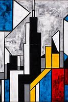 Deze moderne interpretatie van een stedelijke skyline combineert strakke lijnen en primaire kleuren tot een levendig kunstwerk. De geometrische vormen en het opvallende contrast maken het een perfecte blikvanger voor elke ruimte. Dit ontwerp, geïnspireerd door kubistische stijlen, is een samenspel van abstractie en herkenning. Ideaal…
