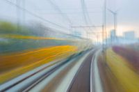 Hang deze foto aan de muur en breng een gevoel van dynamiek en avontuur in je interieur. Laat je meevoeren op deze abstracte reis door de snelheid en laat je inspireren door de krachtige visuele impact van deze abstracte snelle trein.