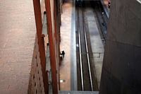 Abstracte foto van het spoor in het station van Antwerpen, van bovenaf gefotografeerd.