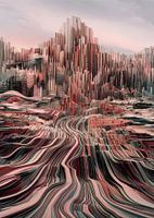 Een gepixeleerde abstracte poster met een afbeelding van een grote stad ergens in de wereld.
