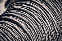 De kracht en textuur van deze abstracte close-up van een olifantenstam zorgen ervoor dat u fijne details zoals pezig haar en het ingewikkelde patroon van de dikke huid kunt zien, terwijl u een tijdloze sfeer creëert met een hoog contrast.