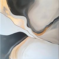 Vloeiend en harmonieus vloeien zachte grijstinten samen met warme gouden accenten alsof ze een rustige melodie vormen. De gebogen lijnen creëren een dynamische beweging die de kijker boeit, terwijl het spel van licht en schaduw voor een subtiele diepte zorgt. Een kunstwerk dat zowel rustgevend als energiegevend is.