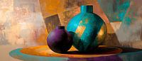 Een harmonieus samenspel van levendige kleuren en fascinerende vormen! De glinsterende vazen in rijk blauw en diep paars springen onmiddellijk in het oog en voegen een vleugje elegantie toe aan elke kamer. Ideaal voor in de woonkamer, waar ze stijlvol tot hun recht komen en een ontspannen sfeer creëren.