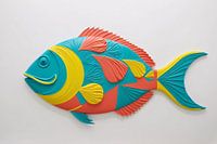 Dit levendige ontwerp van een abstracte vis is een echte blikvanger in elke ruimte. Het gebruik van felle kleuren zoals geel, blauw, oranje en rood geeft het werk een speels en dynamisch karakter, perfect voor liefhebbers van moderne kunst. De subtiele details in de schubben en vinnen voegen een extra laag van diepte toe, waardoor het ontwerp niet alleen kleurrijk, maar ook interessant is om naar te kijken. Dit kunstwerk zou een geweldige toevoeging zijn aan een woonkamer of keuken, waar het direct een vrolijke en energieke sfeer kan creëren. Dankzij het unieke gebruik van kleuren en vormen past dit visontwerp perfect bij een moderne of eclectische inrichting. Een ideale keuze voor wie houdt van opvallende, speelse kunst.