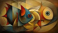 Abstracte vissen kubisme panorama schilderij met een prachtige en unieke stijl die schitterend zal staan in elke ruimte. Dit kunstwerk is dankzij de prachtige kleuren en het stijlvolle ontwerp geschikt voor elke kamer. 100% uniek en origineel!