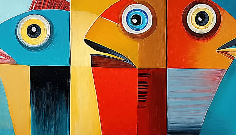 Elke vis is op een unieke manier vormgegeven, met fantasierijke contouren en creatieve patronen die het werk een speelse en artistieke sfeer geven. Het abstracte karakter nodigt uit tot interpretatie, waardoor het schilderij blijft boeien – of je er nu elke dag naar kijkt of het net voor het eerst ziet.