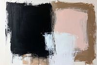 Dit abstracte schilderij met een krachtige, contrasterende compositie voegt direct stijl en diepte toe aan elke ruimte. Het gebruik van zwarte en beige tinten, afgewisseld met zachte roze en witte vlakken, creëert een boeiende balans tussen donker en licht. Dit kunstwerk past goed in een moderne inrichting, of het nu in een woonkamer of…