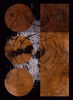 Moderne abstracte mixed media kunst Collage van prints, texturen, geometrische vormen in warm, retro geïnspireerd kleurenpalet. Kunstwerkserie voor Retro, Industrieel, Design, Eclectisch, Boheemse woonstijl.