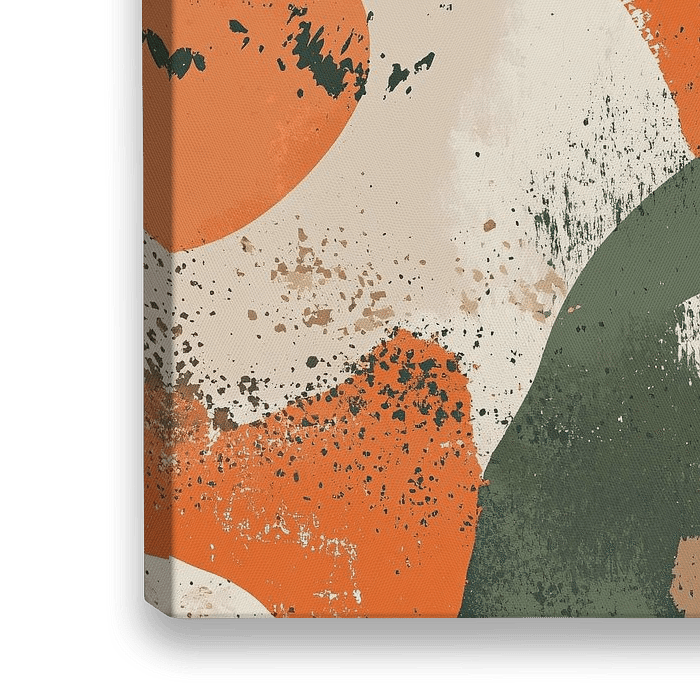 Dit abstracte kunstwerk met gedurfde vormen en aardse kleuren zoals olijfgroen, terracotta en beige creëert een dynamische en moderne sfeer. Het ontwerp is een mix van vloeiende lijnen en geblokte structuren, die op een unieke manier samensmelten en zo een intrigerend visueel beeld vormen. Perfect voor een moderne inrichting in ruimtes…